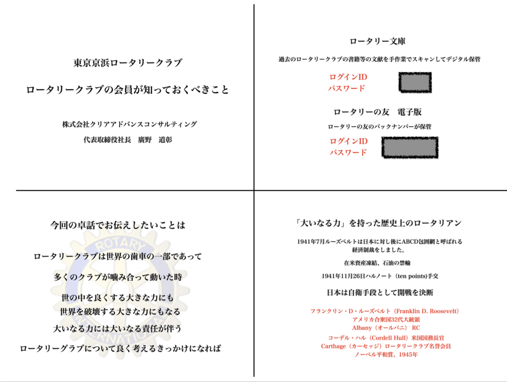 今回の卓話でお伝えしたいことは